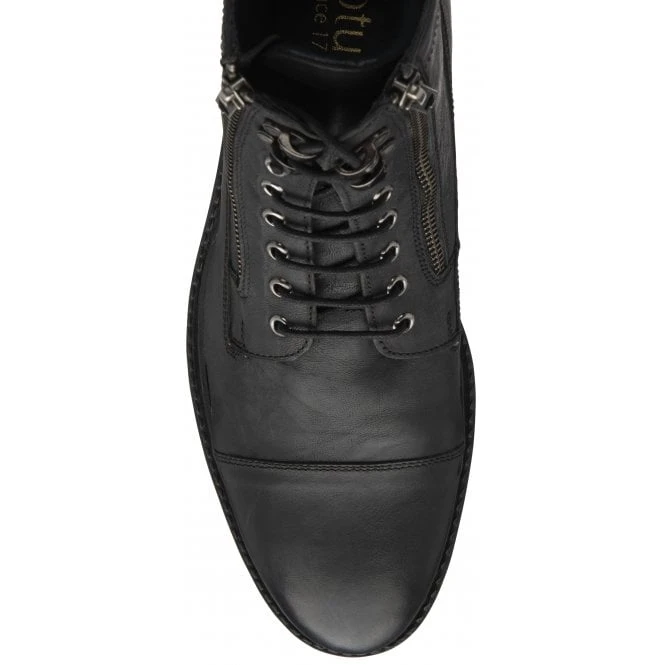 Bring together casual looks with the Lotus Harry ankle boot. This Lotus men’s black leather boot is enhanced by a stitched toecap, an exposed zip and finished with eyelet and D-ring lacing. This new addition to the Lotus collection is a remarkable offering that promises endless amounts of wear.