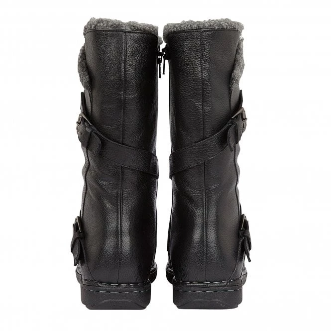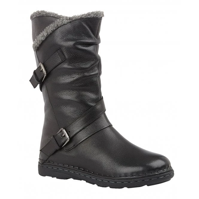 The perfect addition to your winter wardrobe is the highly wearable Lotus ladies’ Jolanda calf boot. Buckle and strap detail can be found on the slouched effect leather upper alongside a cosy faux shearling trim. These almost flat, women’s black boots are a cold weather essential that have a strong après-ski vibe.
