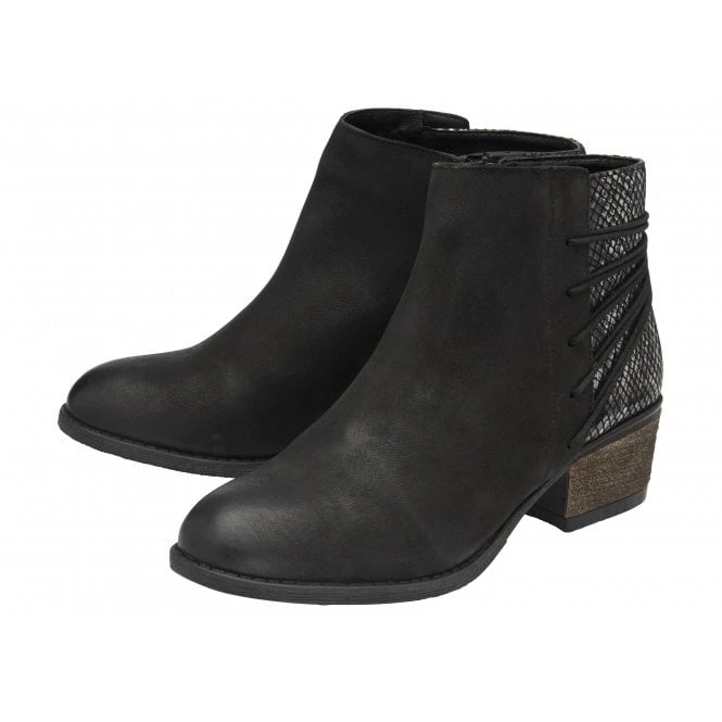 Black Leather & Snake-Print Etta Zip-Up Ankle Boots | Lotus