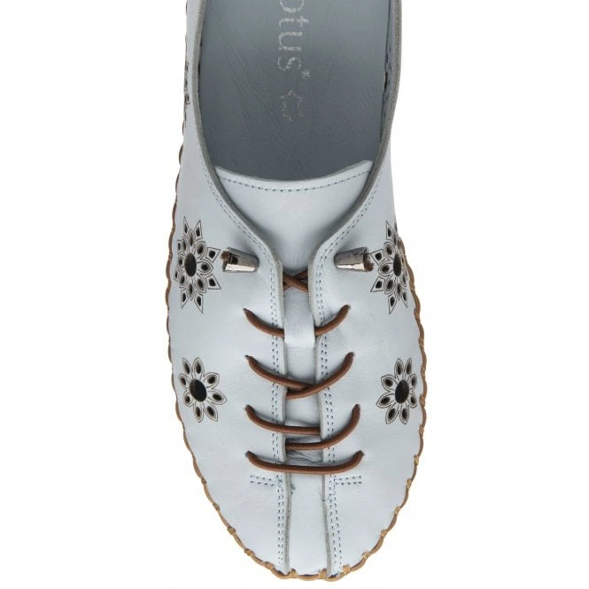 The perfect accompaniment to off duty looks is the Lotus Kristen shoe. Giving this casual pale blue shoe a remarkable finish is laser cut out detailing that is accentuated by decorative etching on the upper. This Lotus slip-on shoe is meticulously crafted with a leather upper and lining, elasticated laces and it features a heel tab to ease getting this shoe on/off. Finished with a gum sole unit that is trimmed with blanket stitching, a subtle 4cm wedge heel and cushioned insoles, this women’s pale blue shoe is a pure delight to wear.