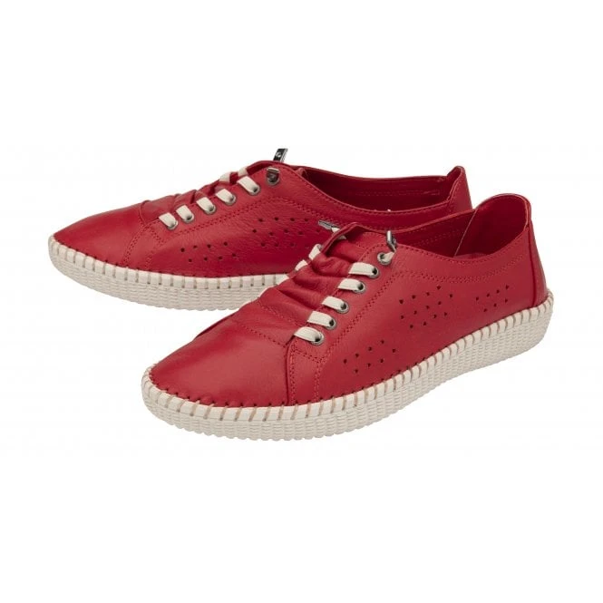 The Lotus Kamari shoe delivers unrivalled product styling and comfort. Key features include punch work detailing on the leather upper, partially concealed elasticated laces and a crisp white sole unit that is enhanced by a blanket stitch trim. This Lotus women’s red shoe is also leather lined and features cushioned insoles, so it’s exceptionally comfortable and perfect for slipping on come the weekend as it will add the perfect finish to casual looks.