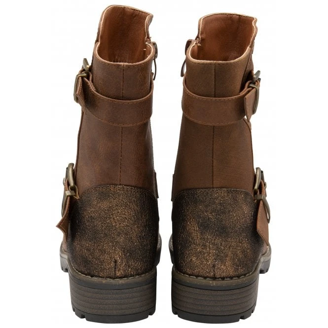 Imbue everyday looks with a fashionable edge with the Lotus Jamila boot. This women’s tan boot sits just above the ankle and is finished with subtle ruche detailing, decorative buckles, a cleated sole and a slight 3.5cm heel. This faux leather ladies’ tan boot has biker boot vibes and will certainly update any casual capsule wardrobe.