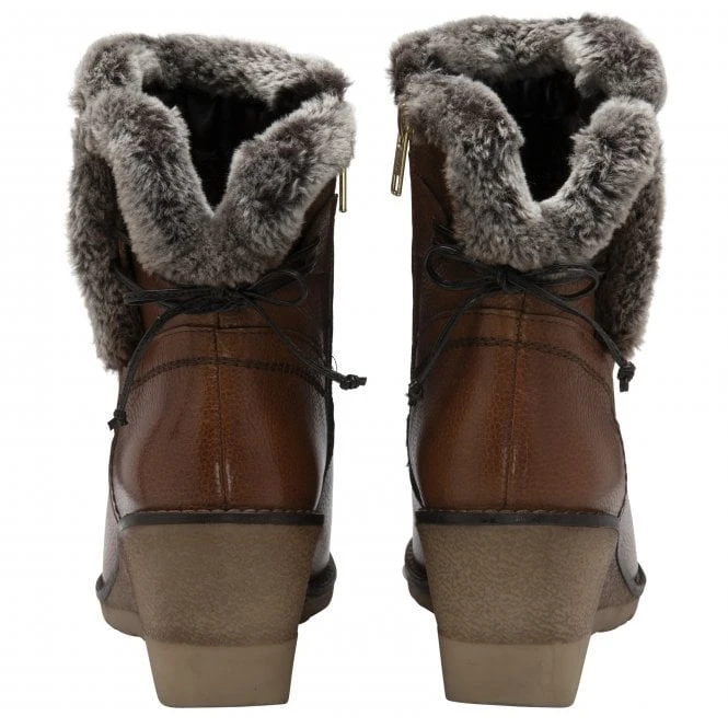 Tan Leather Stephanie Wedge Ankle Boots | Lotus