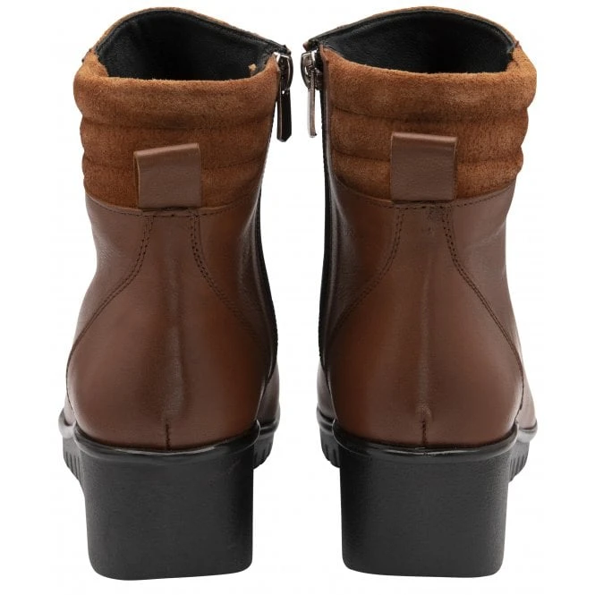 Destined to be a go-to footwear staple is the Lotus Delphine ankle boot. This seriously stylish and highly versatile lace-up tan boot unites premium leather and sumptuous suede on the upper to give a quality finish. Resting on a 4.5cm wedge heel, this Lotus women’s ankle boot will give any wardrobe a seasonal refresh.